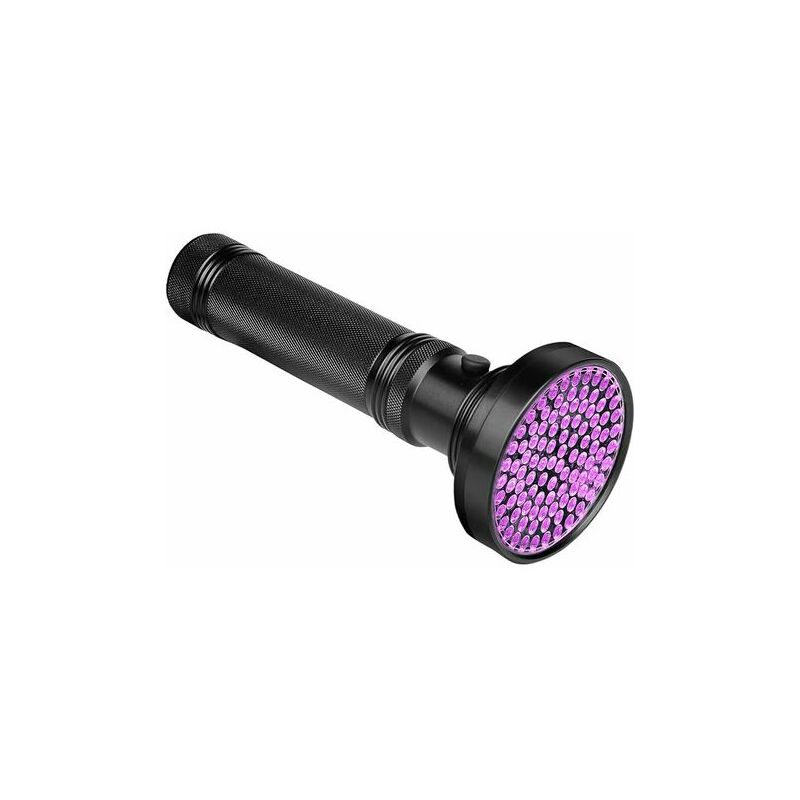 Luce UV estremamente potente: dotata di 100 mini lampade LED ultraviolette e 18 watt con una lunghezza d'onda di 395 nm. Copre una superficie molto più ampia Applicazioni: ottimo rilevatore di macchie di urina dei vostri animali domestici, su tappeti e tessuti, ecc. Design ergonomico: la torcia luminosa nera ha una presa maniglia, con punta che si avvita nel vano batterie (6 batterie AA non incluse) Dimensioni: 19,5x7,8 cm Materiale di alta qualità: la custodia è realizzata in lega di alluminio che conferisce al metallo grande resistenza. Le 100 lampade a LED hanno una durata di 100.000 ore 100 LED super luminosi e durevoli: LED ultravioletto di prima classe con una lunghezza d'onda di 395 nm, l'emissione assolutamente intensa garantisce un'illuminazione sempre più brillante. Rende visibile l'invisibile. La luminosità è sufficiente per rilevare tracce di macchie sui vestiti, ad esempio, anche alla luce del giorno. 100 LED, la luce UV emette un cono di luce costante e copre un'ampia