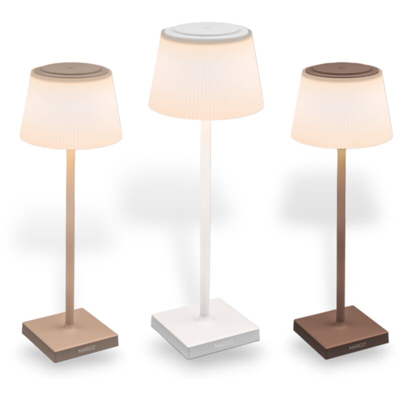 Consigli per l'utilizzo: Caricare completamente la lampada tramite il cavetto in dotazione USB Type-C Il tasto posto alla sommità della lampada è per l'accensione e lo spegnimento TOCCO RAPIDO: Accensione e spegnimento TOCCO PROLUNGATO: Regolazione della luminosità Istruzioni di ricarica: Quando la lampada è in carica vedrete un led rosso, quando sarà carica al 100% il led diventerà verde. Tempo totale di ricarica 4-5 ore. Caratteristiche: Lampade ricaricabili tramite cavo USB-C con diffusore plissetato Accensione e spegnimento con tocco rapido e regolazione dell'intensità luminosa. Potenza 4 Watt - 200 lumen - 3000K - luce calda Diffusore Ø13xH8,5 cm. IP54 Dimensioni: Altezza 38 cm Base 10 cm Colori disponibili: Tortora Bianco Corten
