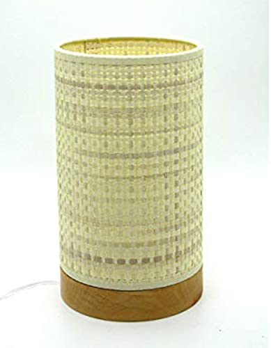Lampada tubo lumetto abat jour da comodino in legno con paralume - produzione propria - made in Italy (base chiara e paglia chiara)