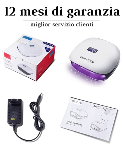 Lampada Unghie UV LED 48W Asciugatrice UV Unghie per Gel Manicure Shellac con 4 Timer, LCD Display, Sensore e Asciugatura a Doppia Velocità