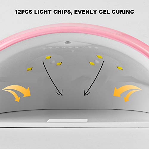 [ASCIUGATURA RAPIDA E CONFORTEVOLE] Lampada per unghie UV con 36 w ad alta potenza e 12 perline di luce Doppia sorgente di luce UV/LED, copertura di perline a 180 ° all'interno.La sua luce è più vicina alla luce bianca, non ha danni agli occhi e alla pelle. applicabile per quasi tutti i tipi di smalto gel uv in modo rapido ed efficiente, ma non può asciugare lo smalto normale.