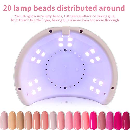 [Asciugacapelli da 60 W e 20 LED] La lampada da 60 W per asciugare le unghie ha 33 sfere della lampada distribuite uniformemente. È ideale per uso privato e professionale nei saloni. Le lampade per la cura delle unghie sono adatte a tutti i tipi di smalto gel UV e LED. Pertanto, puoi progettare unghie belle e lucenti secondo i tuoi desideri.