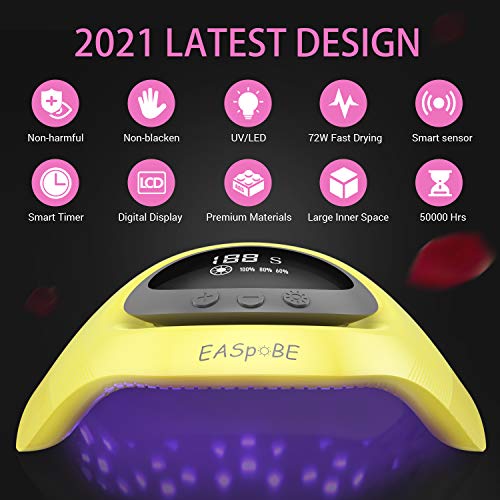 Lampada UV LED Unghie,Fornetto Unghie Semipermanente con Timer Regolabile,Sensore Intelligente e Display LCD. Asciuga Unghie Professionale per Principianti e Avanzati (Giallo)