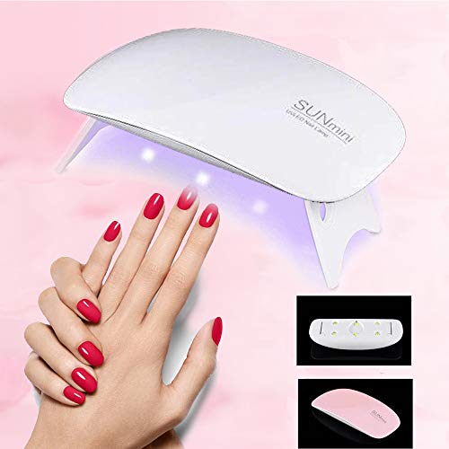 Lampada UV per unghie in gel, 6 mini luci LED da 6 W, USB, portatile, per asciugare le unghie, pieghevole, adatta per tutti gli smalti in gel, colore bianco