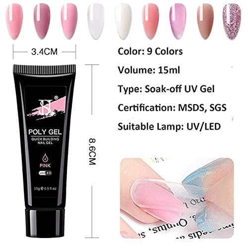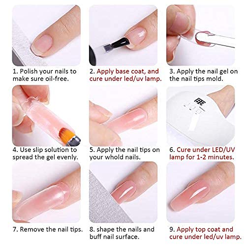 6W Lampada Kit Gel per Unghie Ricostruzione Kit, 9 Colorat 15ml UV GEL Unghie Completo con Unghie Finte/Pennello/Base Top Coat, Costruttore Estensione Delle Unghie Veloce