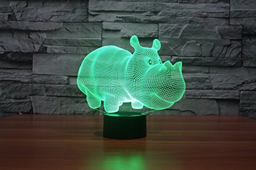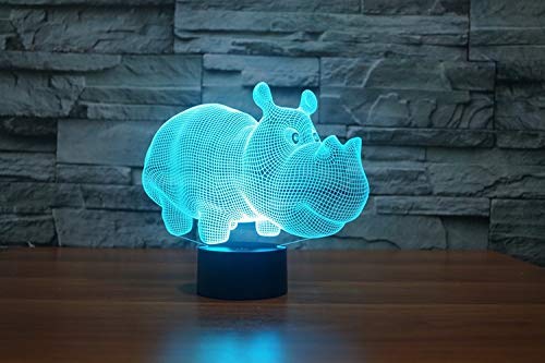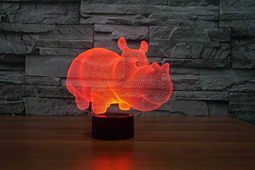 Lampada Di Visione 3D Curva Led Luce Notturna Rhino 7Cambia Cambio Colore Per Bambini Giocattoli Regalo Interruttore Tattile Piccola Luce Notturna