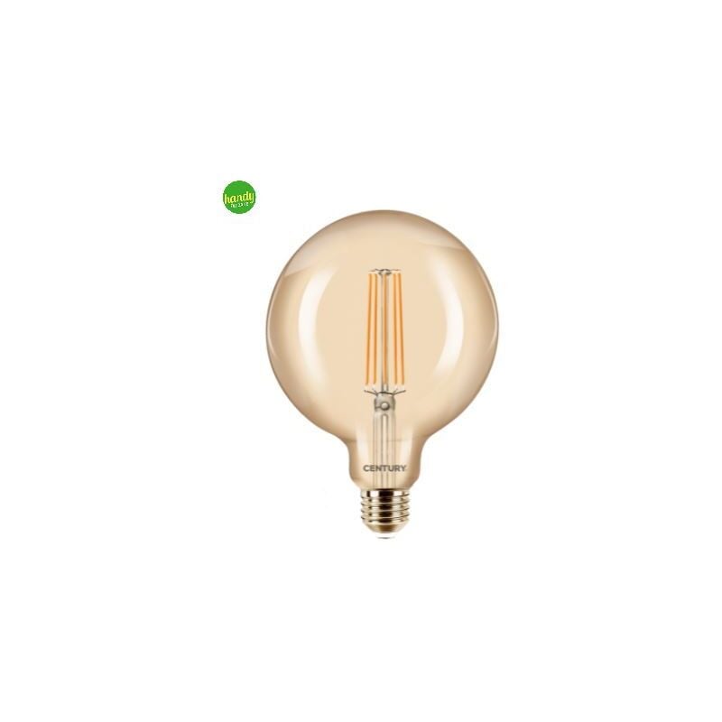 Lampadina LED globo con attacco E27, caratterizzata dall'intramontabile stile vintage donato dal vetro ambrato e dal filamento a LED interno modellato come fosse quello delle classiche lampadine ad incandescenza di un tempo. Infatti la caratteristica principale di questo genere di lampade è che esteticamente sono identiche ad una classica lampadina di vecchia generazione poiché integrano tutto il sistema elettronico all'interno dell'attacco, fornendo così un raggio di illuminazione massimo. La combinazione data dal vetro ambrato e dal filamento interno fanno si che si ottenga una luce istantanea molto calda da 50 watt pari a 630 lumen per un consumo irrisorio di 8 watt, la potenza risicata è voluta per poter creare in un unico ambiente una moltitudine di punti luce senza risultare fastidiosi ma anzi ottenere un ambiente caldo e confortevole che sia un'attività commerciale o un'abitazione privata, la cura dell'estetica e i riflessi ambrati considerando ledimensioni della lampadina ne