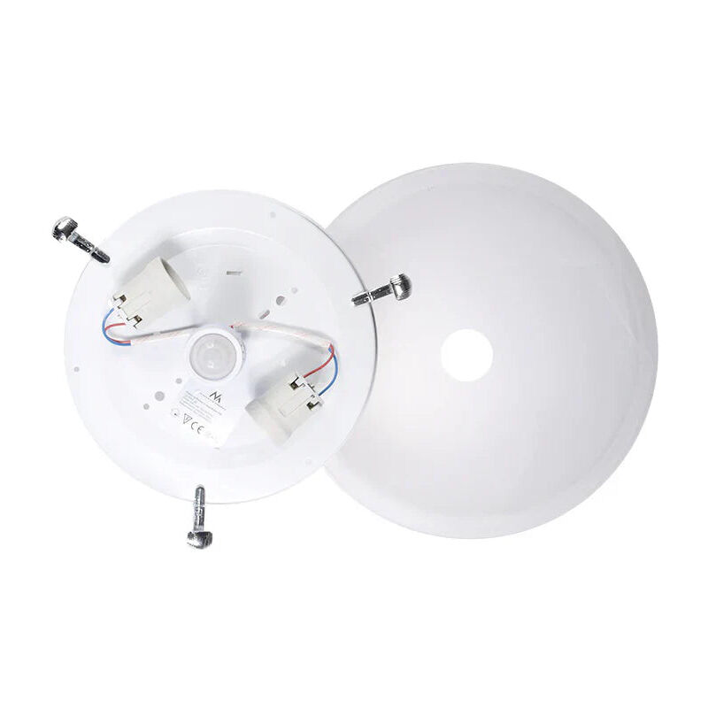 Grazie alla nostra lampada da soffitto con sensore di movimento risparmierai sui costi dell'elettricità poiché l'illuminazione si accende solo quando ne hai bisogno. Funziona anche con illuminazione a LED. Dotato di sensore di movimento a 360° posto al centro. La sorgente luminosa è costituita da due lampadine con attacco E27 da max. 40 W ciascuno. Un paralume in vetro lattiginoso con maniglie argentate rende la cornice visivamente attraente e versatile per varie decorazioni interne: max.