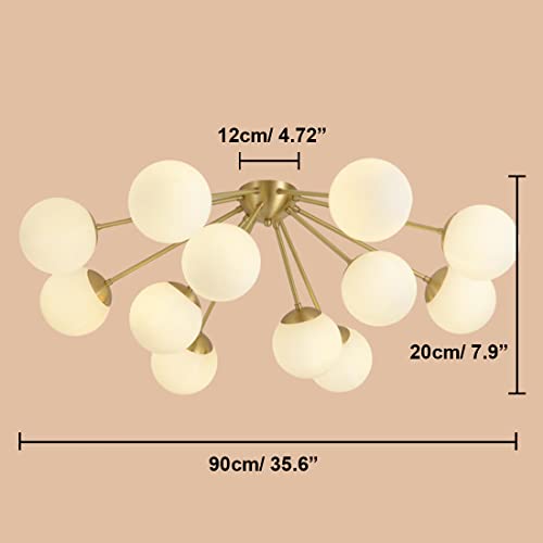 Lampadari moderni Lampada da soffitto in ottone spazzolato oro Lampada da soffitto a 12 luci con globo in vetro da incasso Plafoniere Sputnik contemporanee per camera da letto Sogg
