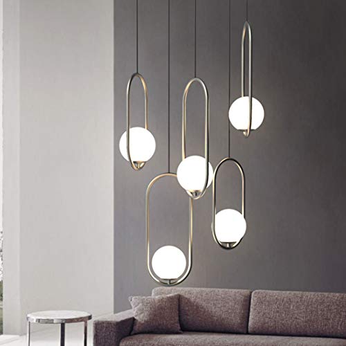 Design senza tempo: moderna lampada a sospensione a nastro di semplicità con paralume globo bianco e materiale in ottone spazzolato in metallo, aggiunge un aspetto elegante mentre illumina la tua stanza per creare l'atmosfera perfetta per qualsiasi decorazione residenziale o commerciale.