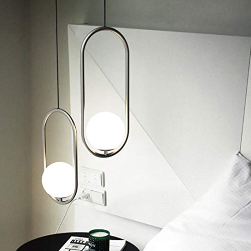 Lampadari a LED, lampada a sospensione a globo Lampada a sospensione a soffitto in nichel spazzolato a nastro con paralume in vetro, Lampadario a sospensione regolabile a metà secolo per camera da let