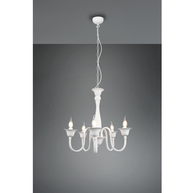 La lampadario EDGE del brand Trio Lighting presenta una struttura in metallo e acrilico bianco opaco con bracci rivolti verso l'alto. Catena regolabile in lunghezza che consente di variare l'altezza del lampadario in base le proprie esigenze. È possibile installare 5 lampadine con attacco E14 da max 40 watt, acquistabili separatamente. Per una migliore resa estetica si consiglia l'utilizzo di lampadine decorative vintage interamente in vetro a filamento Led che garantiranno anche un basso consumo energetico. Una lampada a sospensione che arreda con un tocco classico contemporaneo grandi ambienti, come un salone o una sala da pranzo. Disponibile anche la versione di colore antracite o a 9 luci.