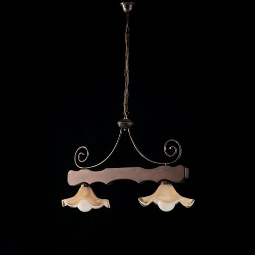 Lampadario Bilancia Rustico Arte Povera Country Chic In Legno Noce 2 Luci Acacia