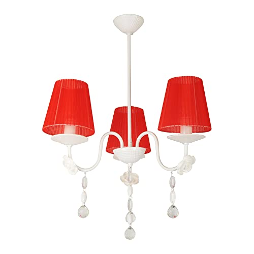 Lux.pro Lampadario a 3 Bracci con Motivi Floreali e Pendenti in Cristalli Artificiali - Lampada da Soffitto con Paralumi Conici - Rosso