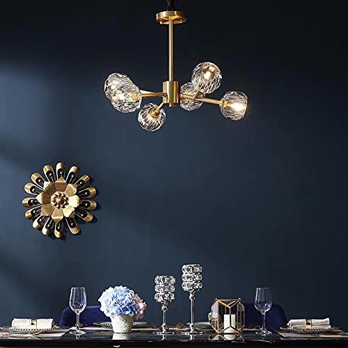 Lampadario Camera da Letto Moderno 6 Bracci Led G9 [Con lampadina] Cristallo Ottone Vintage Lampadari Moderni per Salotto Cucina Soggiorno Industriale Lampada Sospensione