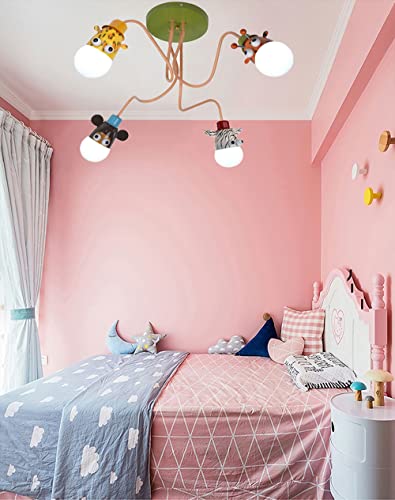 Lampadario Cameretta Bambini Lampada Da Soffitto E27 creativo in ferro animali cartoni animati Plafoniere Camera Da Letto Plafoniera Moderna Camerette Camera Dei Bambini Lampadario (4 Luci)