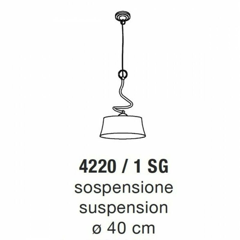 Sospensione classica con particolare forma del vetro anticato che diffonde luce in tutta la stanza. Un lampadario sinuoso nella sua montatura e singolare nella forma del suo vetro. Un prodotto Made in Italy Lampadario classico LAM 4220 1 SG E27 LED Sospensione in metallo e vetro, attacco E27 LED, interni IP20 4220 1 SG è una sospensione classica prodotta e realizzata in Italia dall'azienda LAM illuminazione. Categoria: lampade a sospensione. La struttura della sospensione 4220 1 SG è verniciata in bronzo dorato ed il diffusore in colore scavo antico (come foto). A richiesta il metallo è disponibile bianco opaco o testa di moro e sempre a richiesta il vetro può essere richiesto nel colore bianco satinato o crema satinato. Il corpo illuminante è provvisto di un portalampade attacco E27 per lampada a led esclusa, una tensione a 220/240V (quindi non necessita di alimentatore), ha un grado di protezione IP20 quindi adatto solo ad ambiente interni con assenza di umidità. Le lampadine LED si