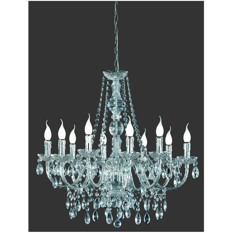 Lampadario Classico 10 Luci Cromo Pendenti Decorativi Il lampadario Lüster di Trio Lighting è composto da una struttura in metallo cromato con 10 bracci rivolti verso il soffitto e portalampada E14. L'intera struttura è impreziosita da pendagli decorativi a goccia in acrilico trasparente e cromo. Catena regolabile in lunghezza che consente di variare l'altezza secondo le proprie esigenze. È possibile installare 10 lampadine con attacco E14 da max 40 watt (non incluse). Per creare un miglior effetto visivo si consiglia l'utilizzo di lampadine Led a colpo di vento interamente in vetro che contribuiscono anche ad una migliore resa luminosa e un basso consumo energetico. Un elemento dallo stile classico, ideale per illuminare e arredare diverse zone della vostra casa che necessitano di un'illuminazione diffusa. Lampadario consigliato per grandi ambienti, come una sala da pranzo o un salone. Disponibili diversi articoli correlati della stessa serie.