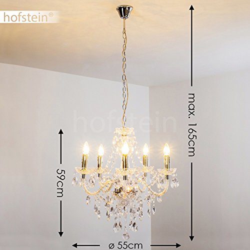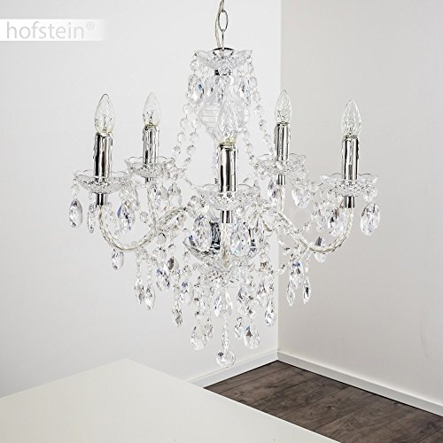 Lampadario classico in metallo/acrilico cromato, lampada a sospensione a 5 luci, 5 x E14, max. 165 cm (altezza regolabile), lampada a sospensione moderna, design vintage/retrò, senza lampadina/e