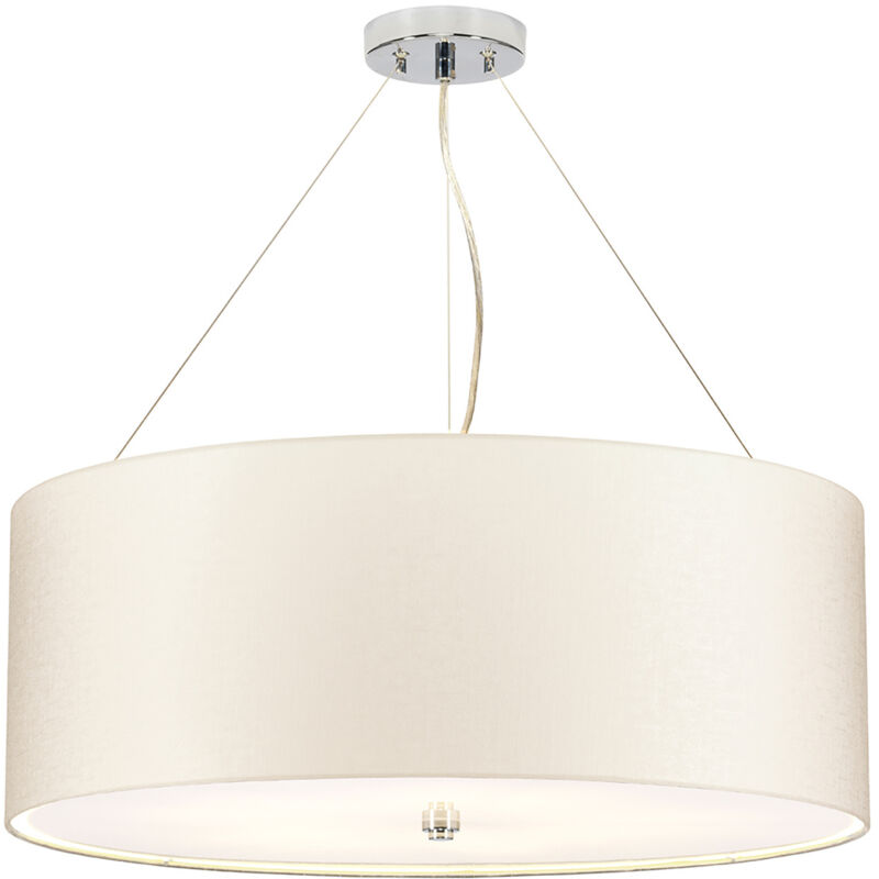 Collezione Pearce DIVERSE MISURE Lampada a sospensione da 26 con rosone in cromo lucido. Questo lampada a sospensione è disponibile in stock con un paralume in finta seta color avorio. È possibile scegliere tra 6 diverse dimensioni, con un rosone a soffitto e un terminale in cromo lucido o in ottone invecchiato. È incluso un diffusore inferiore in acrilico bianco lucido. Per ulteriori colori di paralume e opzioni personalizzate, consultare il nostro catalogo di paralumi.