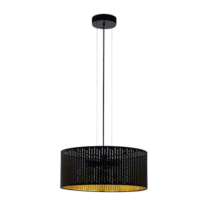 Collezione Varillas LA LAMPADA CHE OFFRE UNA LUCE SUGGESTIVA E UN EFFETTO CHIC La lampada a sospensione VARILLAS ha una piccola base in metallo nero da cui scende il paralume rotondo in stoffa nera.. All'esterno e dorata all'interno che rivestito anche di una pellicola trasparente. I ritagli verticali sul paralume creano un particolare gioco di luci e ombre quando la luce è accesa. É adatta a qualsiasi stile di arredamento e a qualsiasi ambiente, che si tratti del soggiorno, della sala da pranzo o della camera da letto. La lampadina, con attacco E27, non è inclusa nella consegna.