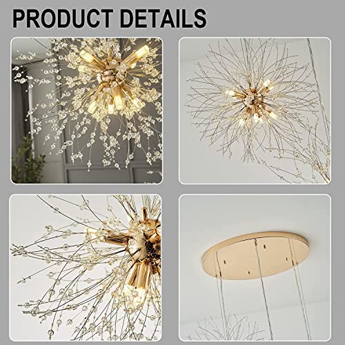 ✨【Design unico del dente di leone】: questo lampadario di cristallo a forma di fuoco d'artificio è splendidamente progettato a forma di dente di leone. Il bagliore traslucido del cristallo conferisce un lusso romantico e la finitura dorata con cristalli irradianti aggiunge meraviglia e bellezza a qualsiasi spazio.