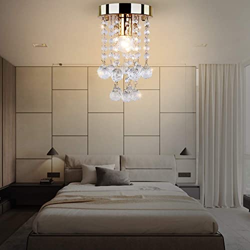 Lampadario di cristallo moderno a incasso Mini lampadario a goccia di pioggia lampada da soffitto per bagno, cucina, sala da pranzo, corridoio (argento), colore: oro (colore: caldo rotondo)