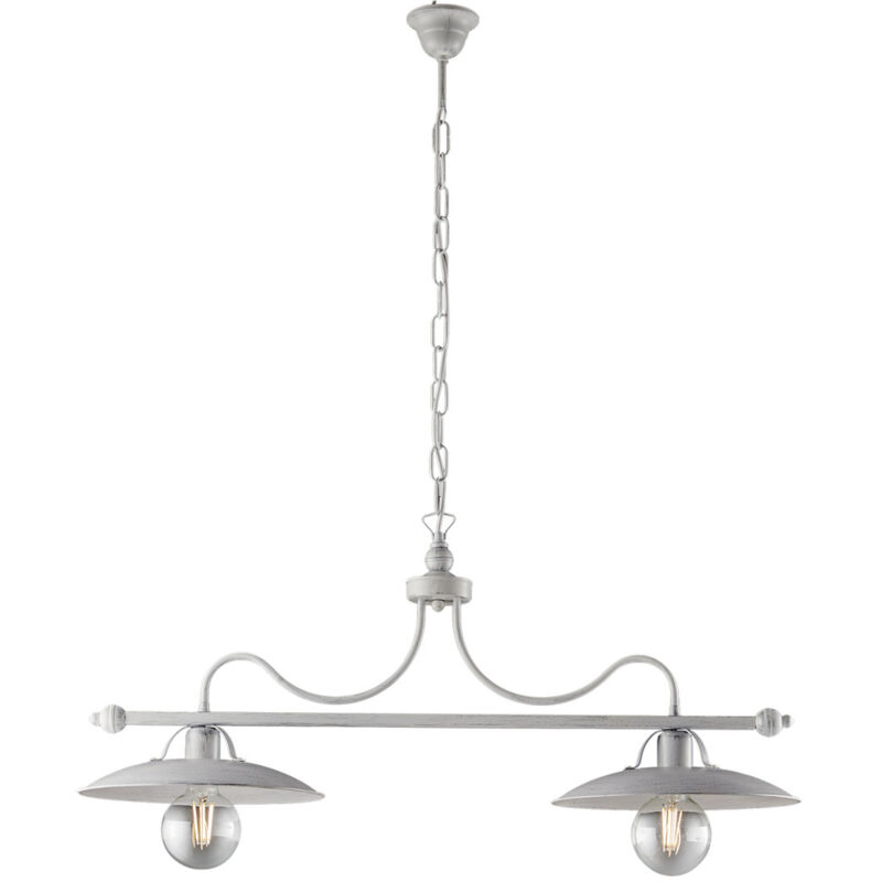 Lampadario in ferro laccato bianco con decorazione argento antico 2 luci