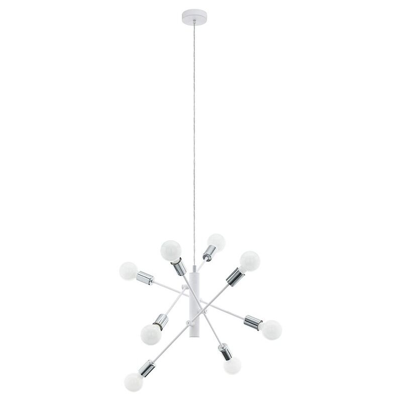 Collezione Gradoli LA LAMPADA CON UN TOCCO DI MODERNITÀ E ORIGINALITÀ AL TUO SPAZIO La lampada a sospensione GRADOLI è realizzata in metallo bianco. I bracci lineari, disposti in modo parallelo, sono regolabili per un look individuale. . La combinazione con gli otto supporti per lampadine a vista dal color cromo completa abilmente il design futuristico e moderno della lampada. Questo lampadario si armonizza perfettamente con arredamenti in stile minimalista offrendo un'illuminazione particolare dell'ambiente, che sia nel soggiorno o nella sala da pranzo, posizionato al di sopra del tavolo da pranzo. Le lampadine opalescenti presenti nell'immagine non sono incluse nella consegna. Per la lampada è adatta qualsiasi lampadina con attacco E27.