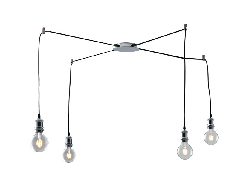 Lampadario Industriale Groove nero in tessuto, 4;