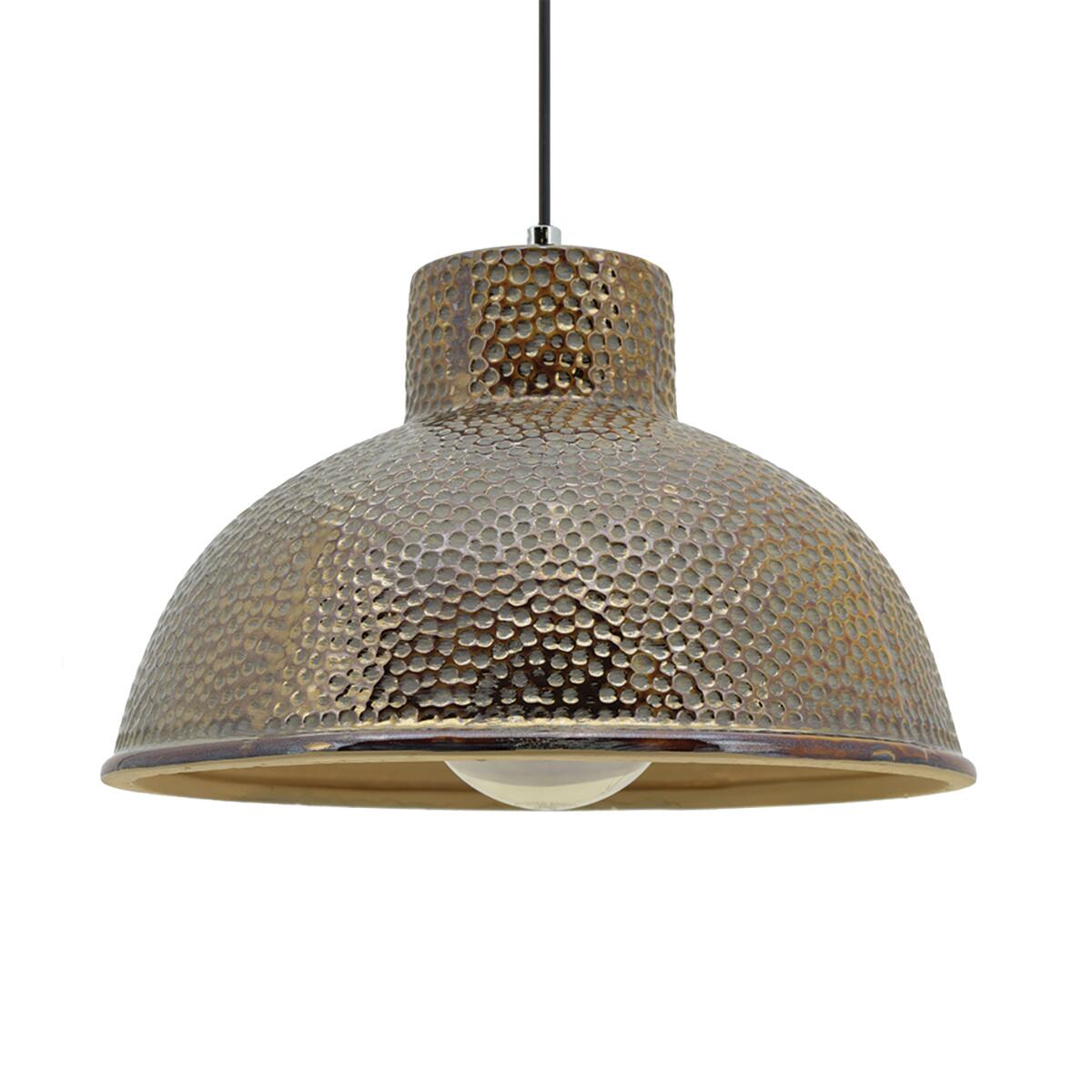 Vuoi conferire un tocco vintage e industriale ai tuoi ambienti? Il lampadario a sospensione Ishan è ciò che stai cercando. In ceramica oro invecchiato, questo lampadario arrotondato industriale è ideato per illuminare e decorare con stile gli spazi. È ideale per uno stile d'arredo moderno ed eclettico. Questo modello necessita di una lampadina con potenza massima di 40W e attacco E27 non compresa nella confezione.. Questo lampadario a sospensione è inoltre facilmente regolabile in altezza.