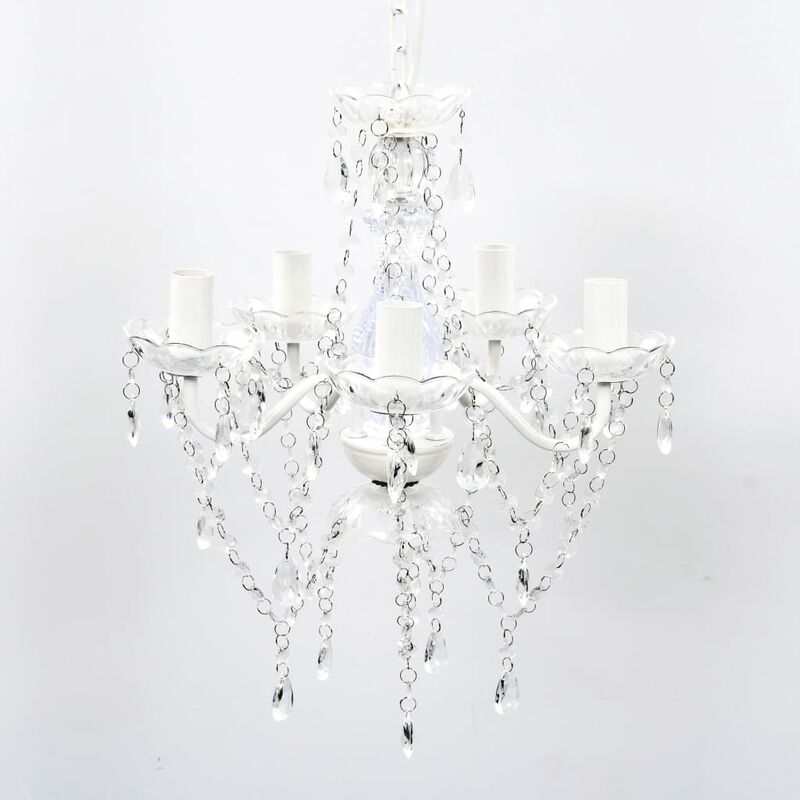 Questo lampadario in cristallo artificiale attirerà l'attenzione in qualsiasi stanza. La sua grazia classica può mettere in evidenza il vostro salotto, la camera da letto o la sala da pranzo.Questo lampadario ha uno stelo centrale in cristallo splendidamente lavorato con bracci in acrilico curvo, applique e perline. Potete usare sia lampadine sia luci a LED. La consegna include 1 lampadario in cristallo trasparente. Le lampadine non sono incluse nella consegna. Colore: Trasparente Materiale: Vetro artificiale Diametro: 40 cm Altezza: 40 cm Massimo caduta: 80 cm Stelo centrale: 40 cm Lampadine: 5 E 14 (non incluse nella consegna) Potenza: max. 40 W 230 V