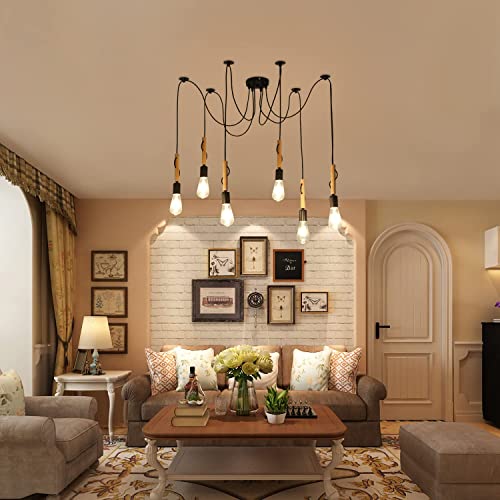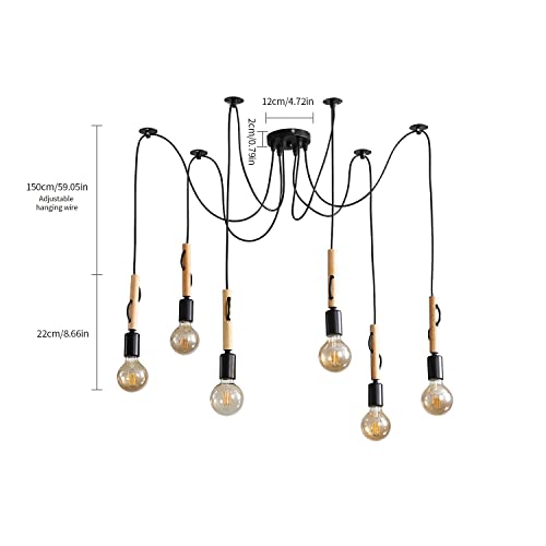DIY lampadario: La lampada a sospensione a 6 teste con legno è regolabile in altezza. Con cavi di lunghezza fino a 1,8 m, puoi creare il lampadario fai-da-te o tagliarlo corto per adattarlo a spazi alti e bassi, illuminando tutte le aree in modo uniforme.