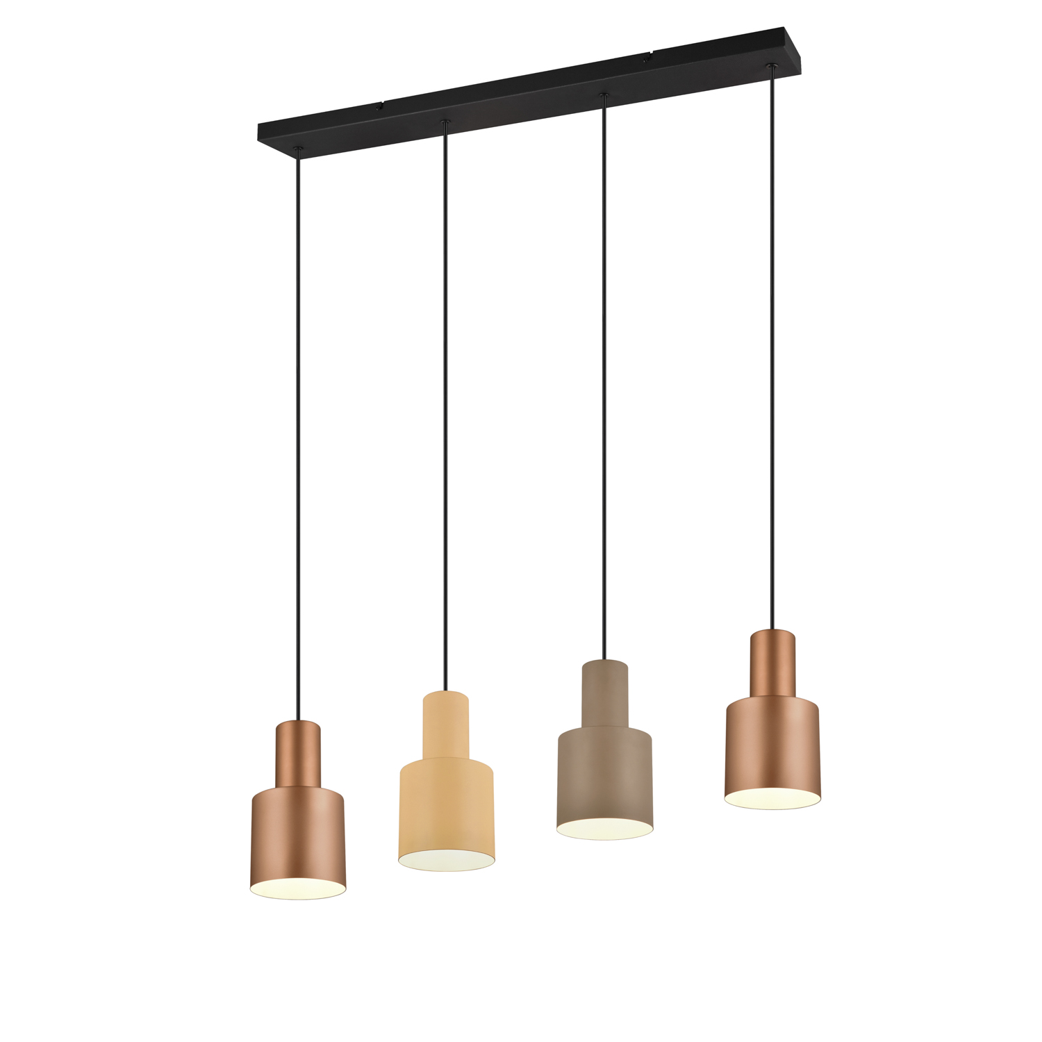 La combinazione di sfumature di luce in colori e altezze diverse attira l'attenzione e trasforma il lampadario in un elemento di design speciale nella tua casa. Il lampadario a sospensione Agudo a quattro lampade crea un'atmosfera accogliente con la sua estetica minimalista, la colorazione naturale e il design elegante. La finitura in metallo opaco dei paralumi completa il tutto, creando un'irresistibile attrazione. L'uso di sorgenti luminose a LED è consigliato per l'illuminazione a risparmio energetico. Queste sono un'alternativa ideale alle tradizionali fonti di luce alogene e offrono alta qualità della luce e risparmi energetici fino all'80%. Con le sorgenti luminose a LED, beneficerai anche di una lunga durata e di una bassa generazione di calore, proteggendo l'ambiente. Larghezza: 87cm. Altezza: 150cm. Diametro: 12cm. Profondità: 12cm.