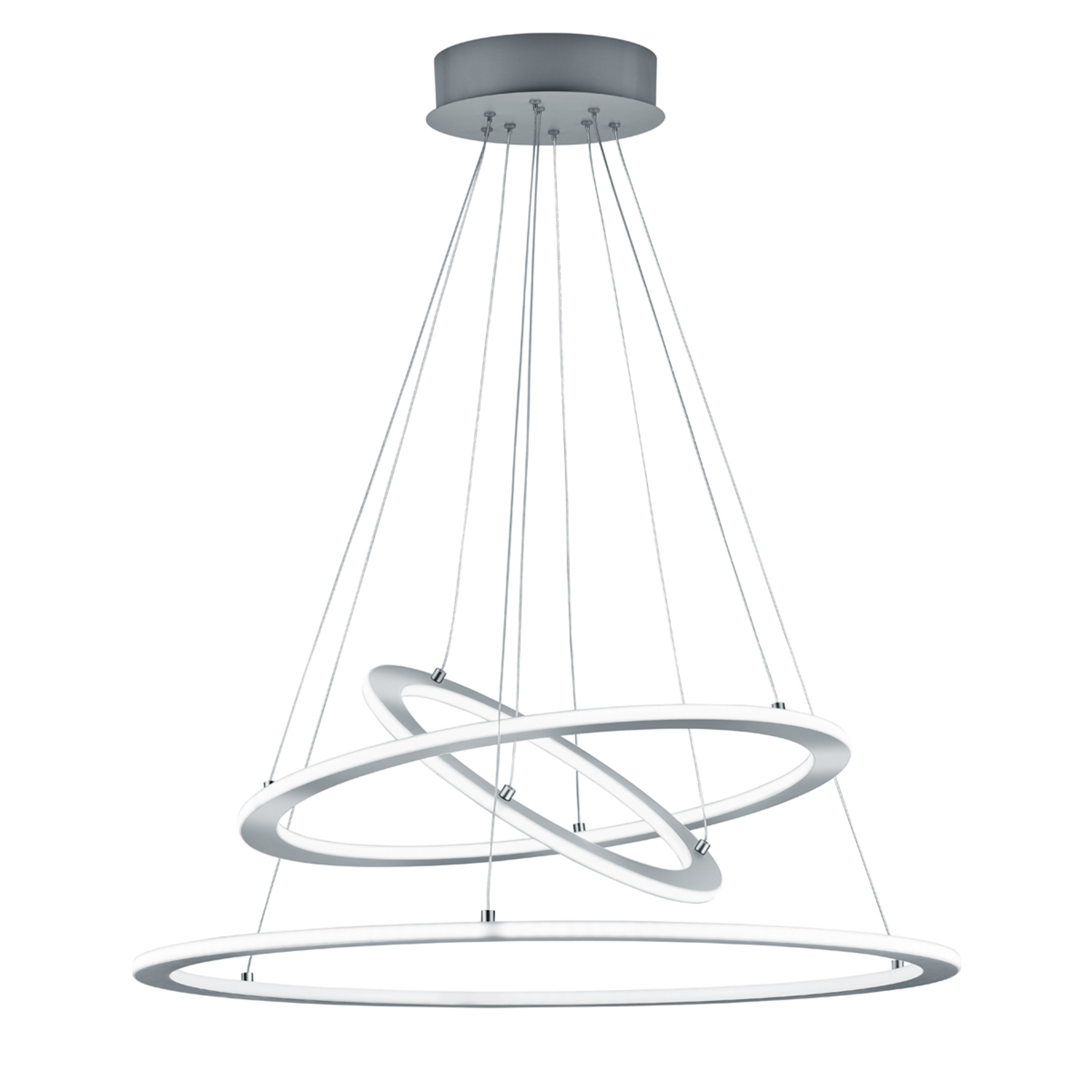 Aggiungi accenti eleganti alla stanza con il moderno lampadario Durban. Il design dinamico cattura l'attenzione con il suo stile inconfondibile. Il dimmer switch integrato consente di selezionare tre diversi livelli di luminosità utilizzando un interruttore luminoso convenzionale. Passa dal 100% al 50% e al 25% per adattarsi a diverse esigenze. La struttura di colore nichel opaco si adatta ad ogni stile di arredo. Inoltre, il lampadario presenta la moderna tecnologia LED, caratterizzata da alta qualità della luce ed efficienza energetica. Rispetto alle lampade alogene tradizionali, è possibile risparmiare fino all'80% dei costi energetici. Le sorgenti luminose a LED hanno una lunga durata, producono meno calore e proteggono l'ambiente. Altezza 200 cm. Diametro 80 cm.
