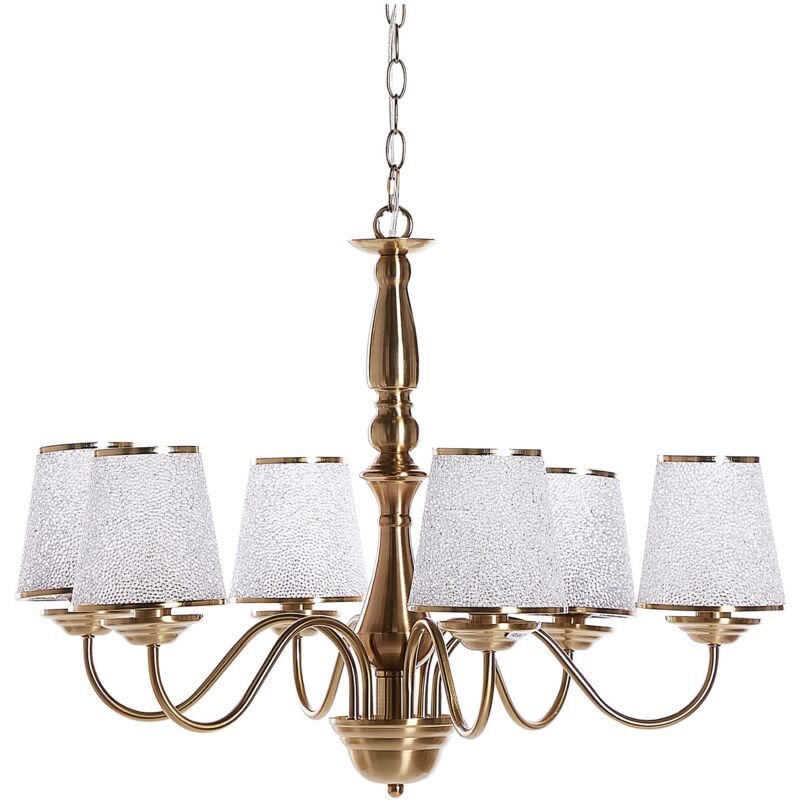 Elegante lampada a sospensione candeliere con 6 bracci in stile vintage. Decora ogni stanza con classe, con questo lampadario dal design classico. Composta da 6 braccia, presenta originali paralumi in acrilico lucido, per ambienti sia in stile moderno che tradizionale. Dettagli: Tipo di prodotto: Lampadario Stile: Classico Colore principale: Ottone Tipo di materiale: Metallo Materiale principale: Metallo Materiale secondario: Acrilico Materiale del paralume: Acrilico Forma: Conica Potenza elettrica: Max. 40W Finitura: Cromata Lampadine richieste: 6 Dimensioni: Lunghezza del cavo: 160 cm Profondità: 65 cm Larghezza: 65 cm Altezza: 127 cm Peso: 4 kg L'offerta include: Non include: Lampadine, 1 x Lampadario Caratteristiche chiave: Luce soffusa, per un'atmosfera rilassante, Ideale come luce ambiente, Molto chic, Materiali di alta qualità, Risparmio energetico ottimizzato, Facile da pulire Guida al montaggio: Richiede installazione. 20-40 min. Informazioni aggiuntive: Ideale per lampadine