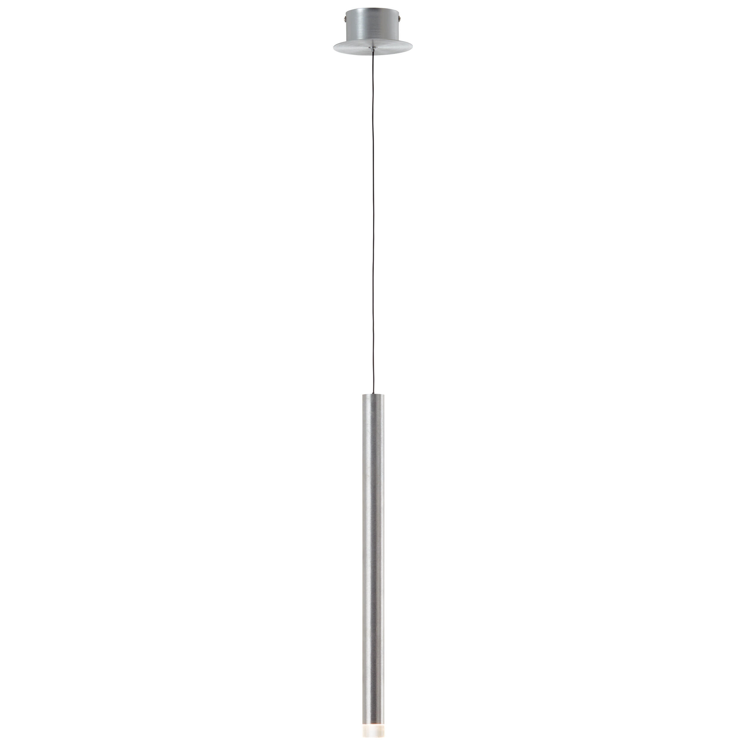 Sospensione Cembalo a una luce con LED integrato. La sospensione è composta da metallo e acrilico ed è di color alluminio.