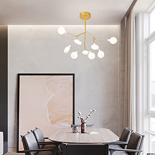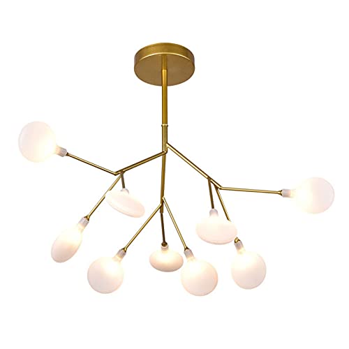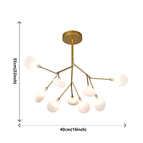 Lampadario Moderno Firefly Sputnik, Lampada a Sospensione Ramo oro G4 con Paralume in Acrilico Plafoniera LED Regolabile per camera da letto Soggiorno Illuminazione(9 luci,40x55cm (16x22inch))