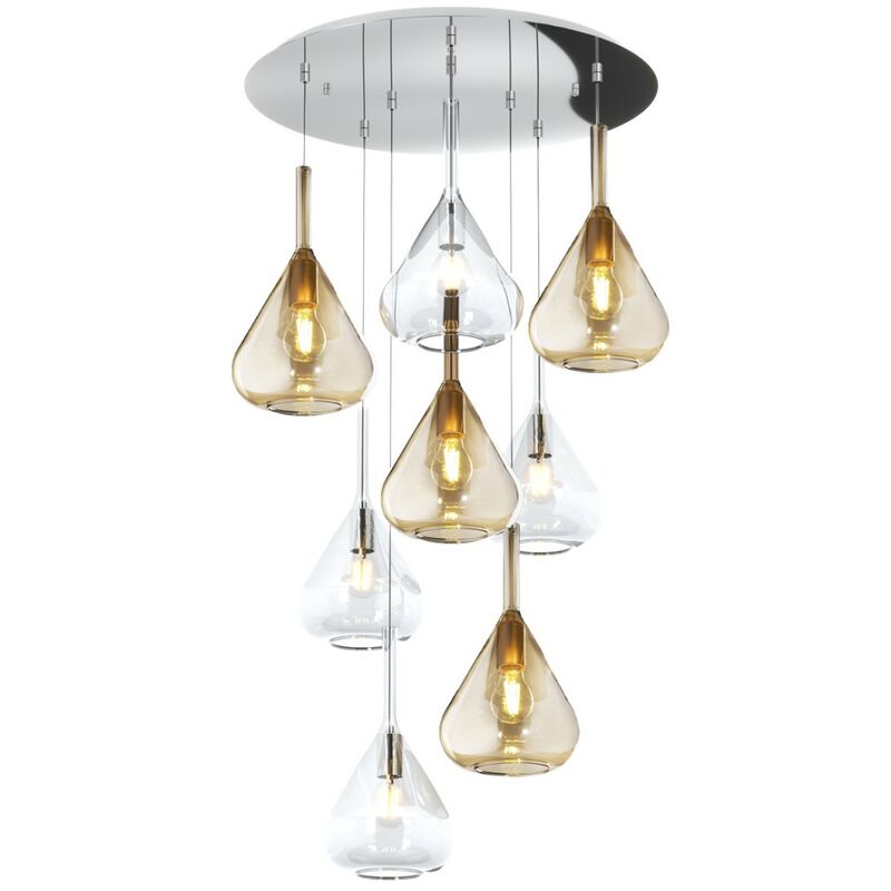 Il lampadario KONA S8 è caratterizzato da un design elegante e moderno, con otto lampade ad altezze sfalsate e sostengono ciascuno un paralume in vetro di colore ambra e trasparente. L'attacco per la lampadina è di tipo E27, che permette di utilizzare comodamente lampadine a LED di differenti potenze e temperature di colore. Grazie alla loro tecnologia, le lampadine LED consentono di ottenere un'elevata efficienza energetica e una lunga durata, garantendo un illuminazione intensa e uniforme per molti anni. Il lampadario KONA S8 con vetri ambra e trasparenti può essere facilmente installato in salotti, sale da pranzo, camere da letto e altre stanze della casa, per creare un'atmosfera accogliente e raffinata. Lampadario moderno Top Light KONA 1177 CR S8 T TA Lampada soffitto, multiluce, vetri bicolore ambra e trasparente Il lampadario è provvisto di 8 portalampade attacco grande E27. Vetri bicolore, n.4 ambra e n. 4 trasparente. L'attacco E27 permette l'utilizzo di lampadine a LED