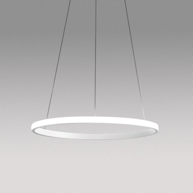 Lampadario moderno dalla forma originale e morbida che volteggia con leggerezza nella stanza. Una sospensione che si differenzia dalle altre per il posizionamento della striscia led nella parte esterna del diffusore, questo permette un illuminazione maggiore e più diffusa in tutto l'ambiente. Lampadario moderno Gea Luce IOLE S1 B 28W LED Sospensione ultramoderna, alluminio bianco, LED, 3000°K Apparecchio a sospensione. Struttura in alluminio verniciato BIANCO OPACO. Schermo diffondente in silicone bianco opale. Modulo led integrato da 28W max (dipende dalla dimmerazione) con tonalità della luce calda (3000°K). Il lampadario composto da 1 anello misura 60 cm. Altezza regolabile dalla base. Base tonda, ancoraggio soffitto, di 16 cm per un'altezza di 4.5 cm e copribase di 19 cm. Dimmerabile tramite dimmer esterno + push (non inclusi) ma a richiesta. Lunghezza cavi elettrici massima 110 cm. Regolabile in altezza con sistema autobloccante grip lock. Tipo Led CRI >80 Driver elettronico