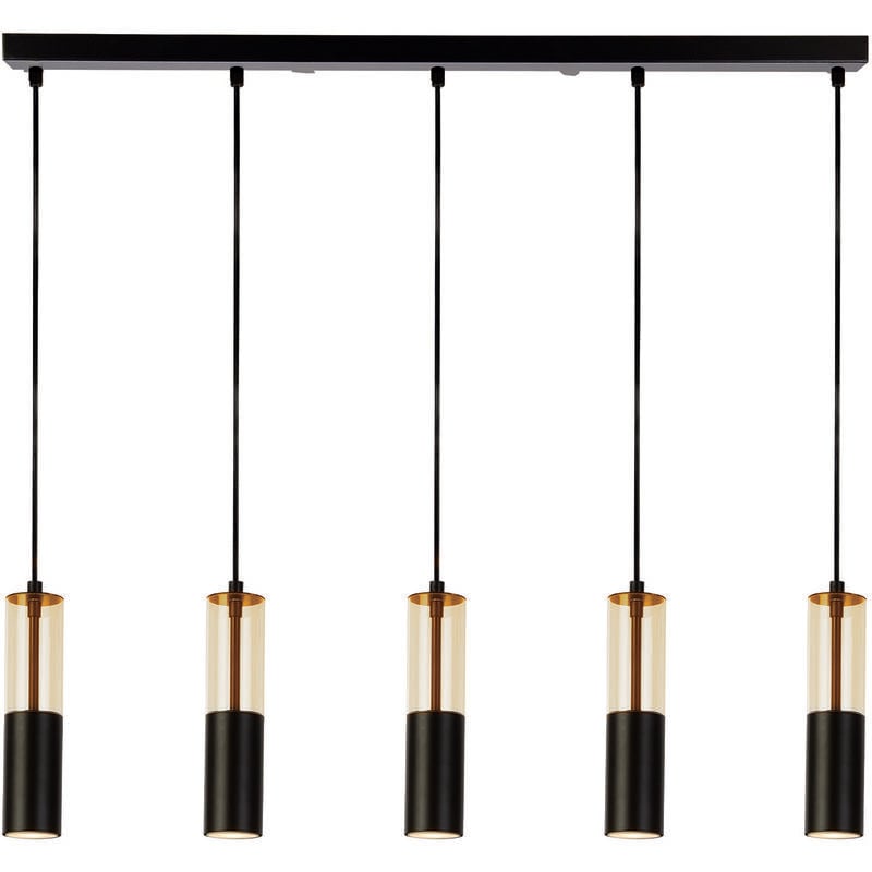 Collezione Merrygold TUBOLARE DA DESIGN Il pendente a barra Merrygold da 5 luci è un'aggiunta straordinaria che combina design moderno e funzionalità. Progettata con metallo nero e acrilico ambrato, questa elegante sospensione da bar crea un contrasto sorprendente che aggiunge un tocco di raffinatezza a qualsiasi cucina o sala da pranzo. La sua funzione regolabile in altezza consente di personalizzare l'illuminazione in base alle proprie esigenze e preferenze.