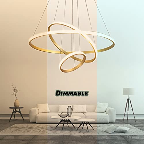 Lampadario Moderno A LED Da 76 W, Lampada A Sospensione Creativa A 3 Anelli Con Altezza Regolabile, Dimmerabile Con Telecomando, Lampada Da Soffitto Per Soggiorno, Lampadario Per Sala Da Pranzo