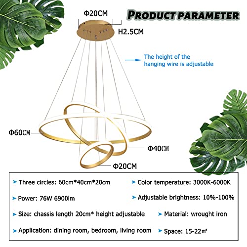 ★ Aspecto del diseño: esta lámpara de araña se compone de tres anillos, simple y hermoso, la altura de la luz colgante se puede ajustar de acuerdo con su entorno (120 cm).