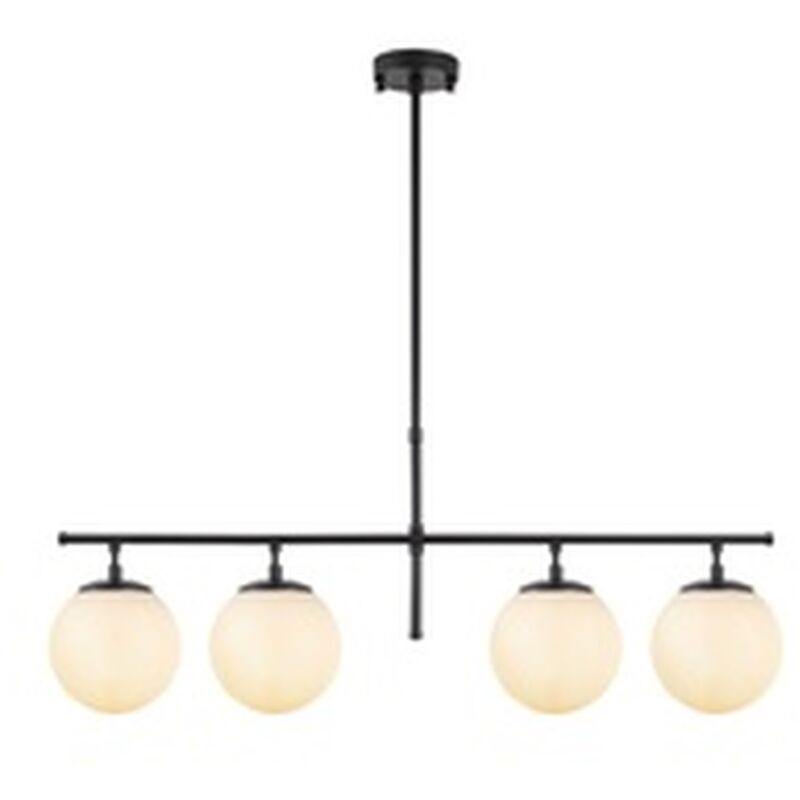 Lampada da soffitto Struttura in metallo Paralume in vetro Base in metallo Diametro paralume: 15 cm (4 pezzi) Misure: 81 x 15 x 36-76 cm Altezza regolabile Diametro della base: 12 cm Altezza della base: 3 cm IP20 Tipo di filettatura: 4 x E14 Max 40 W Colore: nero