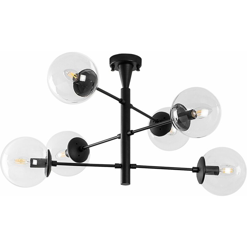 Lampada da soffitto Struttura in metallo Paralume in vetro Diametro paralume: 15 cm Altezza paralume: 15 cm Misure: 75 x 75 x 40 cm Diametro della base: 10 cm Altezza della base: 2 cm IP20 Tipo di filettatura: 6 x E14 Max 40 W Colore: nero