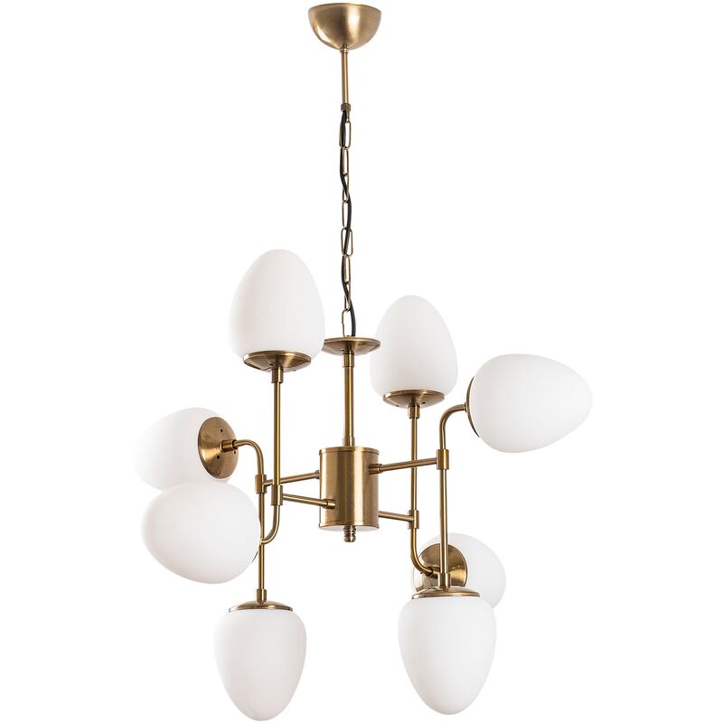 Lampada da soffitto Struttura in metallo Paralume in vetro Base in metallo Dimensioni: 74 x 74 cm Altezza totale: 89-169 cm Diametro del paralume: 12 cm Altezza paralume: 15 cm Diametro della base: 10 cm Altezza base: 6 cm IP20 Tipo di filo: 8 x E14 Max 15 W Colore: Vintage