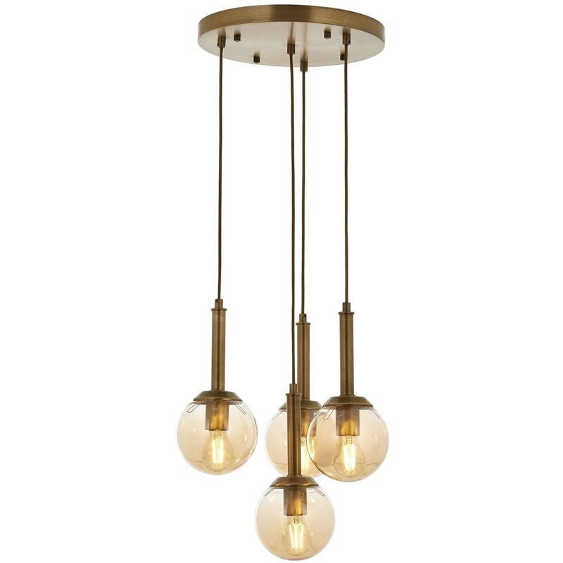 Lampada da soffitto Struttura in metallo Paralume in vetro Lunghezza: 90 cm Diametro: 40 cm Tipo di filettatura: 4 x E 27 Max 6 W Classe IP: IP20 220 V - 240 V 50 - 60 Hz Colore: Antico