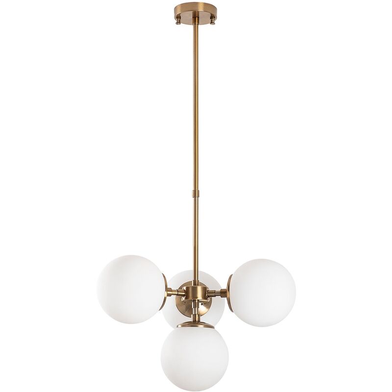 Lampada da soffitto Struttura in metallo Paralume in vetro Base in metallo Diametro paralume: 15 cm (4 pezzi) Dimensioni: 43 x 43 x 47-89 cm Altezza regolabile Diametro della base: 12 cm Altezza della base: 3 cm IP20 Tipo di filettatura: 4 x E14 Max 40 W Lampadina non inclusa Colore: Vintage