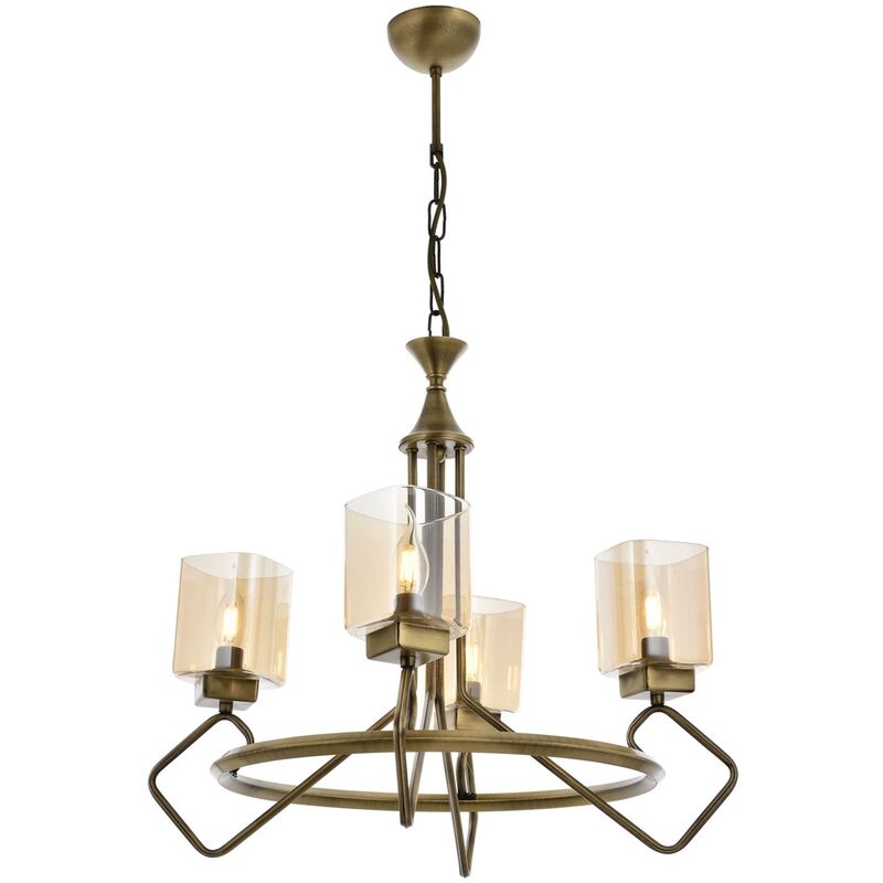 Lampada da soffitto Struttura in metallo Paralume in vetro Lunghezza: 90 cm Diametro: 60 cm Tipo di filettatura: 4 x E 14 Max 4 W Classe IP: IP20 220 V - 240 V 50 - 60 Hz Colore: Antico