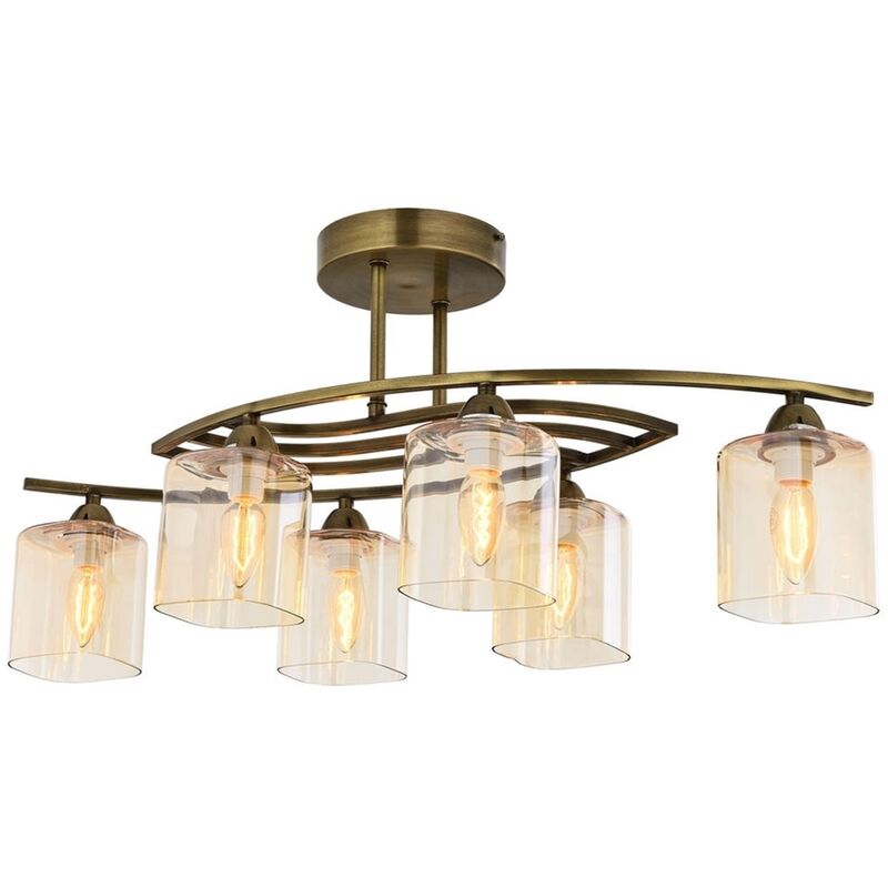 Lampada da soffitto Struttura in metallo Paralume in vetro Lunghezza: 31 cm Dimensioni: 75 x 30 cm Tipo di filettatura: 6 x E 14 Max 4 W Classe IP: IP20 220 V - 240 V 50 - 60 Hz Colore: Antico